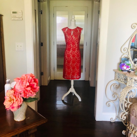 Lace shift dress, Coral