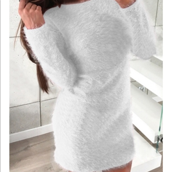 white fuzzy sweater dress