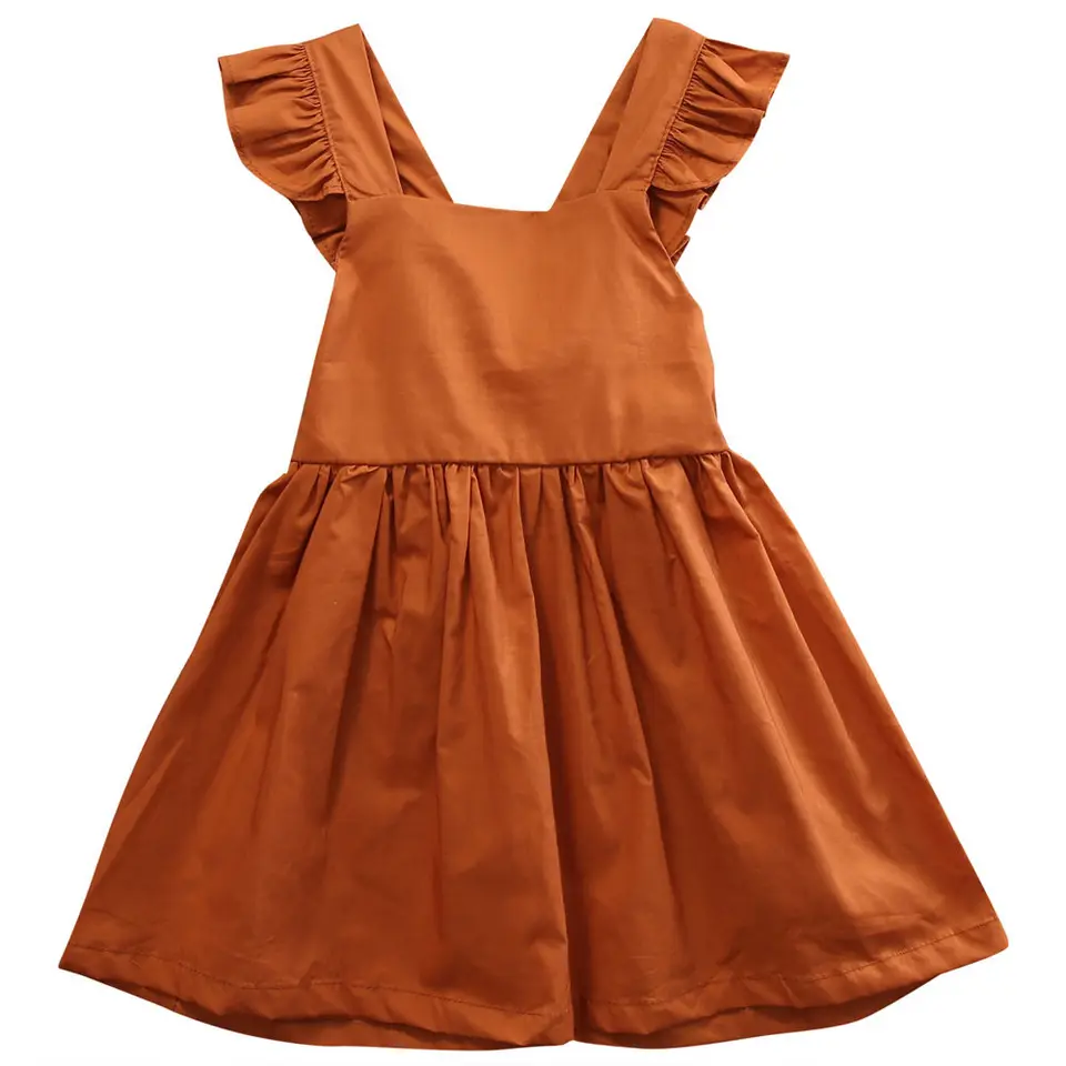 Ruffles Baby Girl Back Cross Dresses brown summer dress