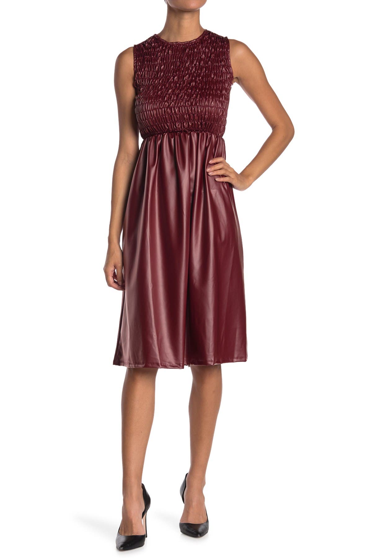 Smocked Faux Leather Midi Dress faux leather midi dress