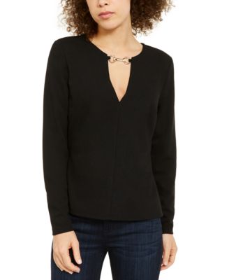 Plus Size Hardware-Neck Long-Sleeve Top macy's inc plus size clothing