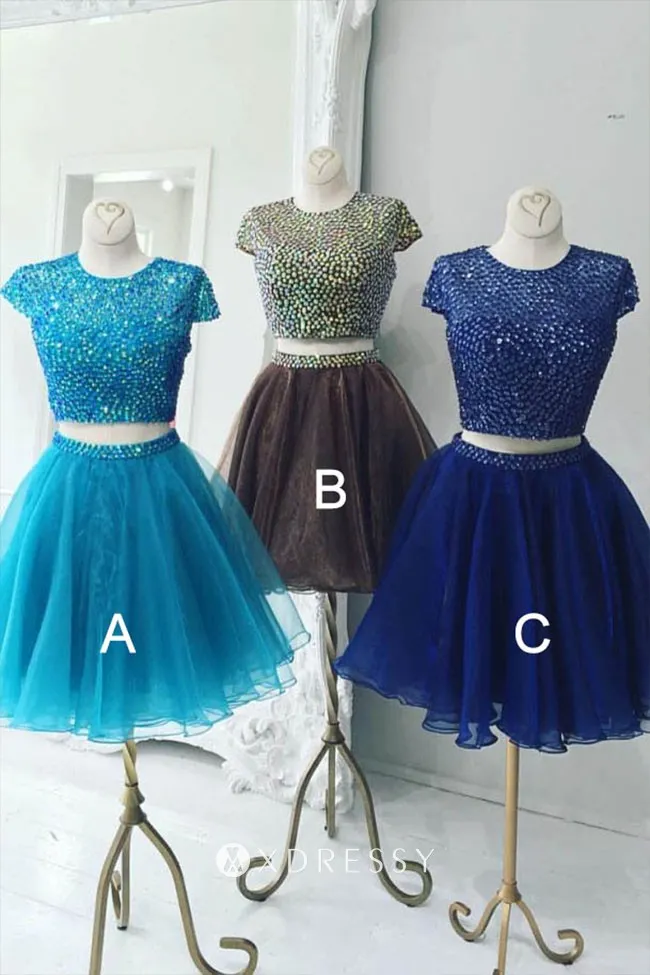 Beaded Short Homecoming Dress two piece cocktail outfit