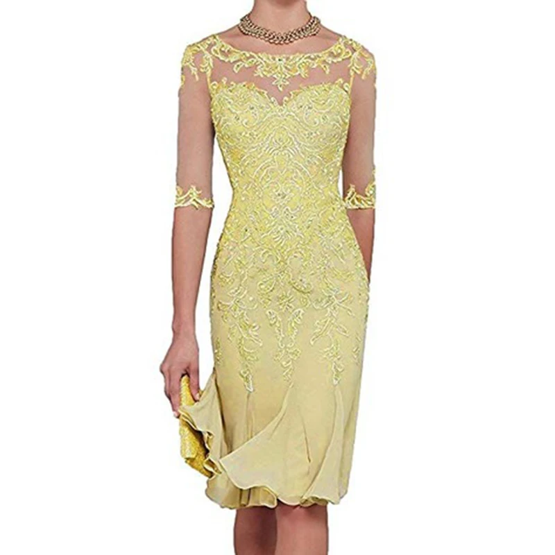 Lemon Half Sleeves Chiffon Mother of lemon mother of the bride dress