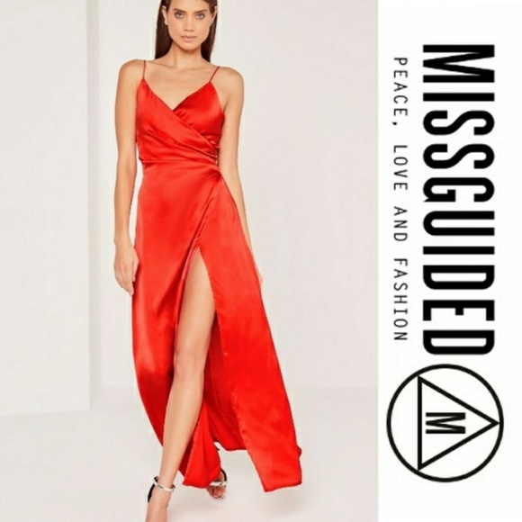 Silky Wrap Over Maxi Dress High Slit wrap over maxi dress