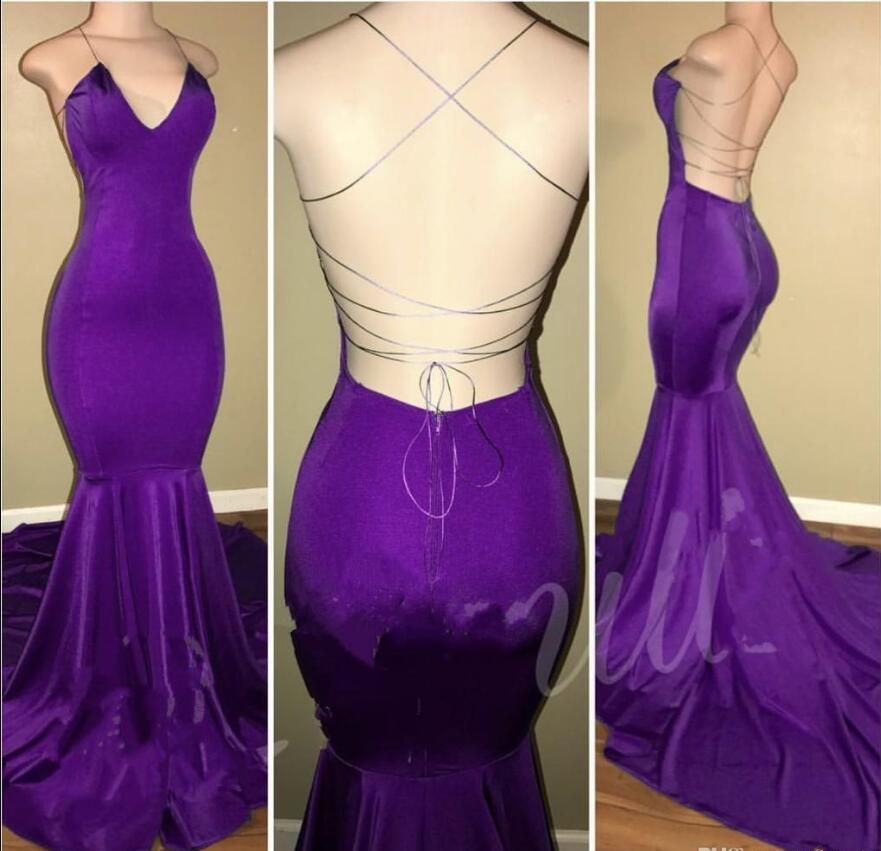 Sexy Backless Purple Prom Dress Evening sexy purple prom dress
