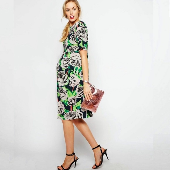 Maternity Wiggle Dress In Floral Print asos maternity wiggle dress