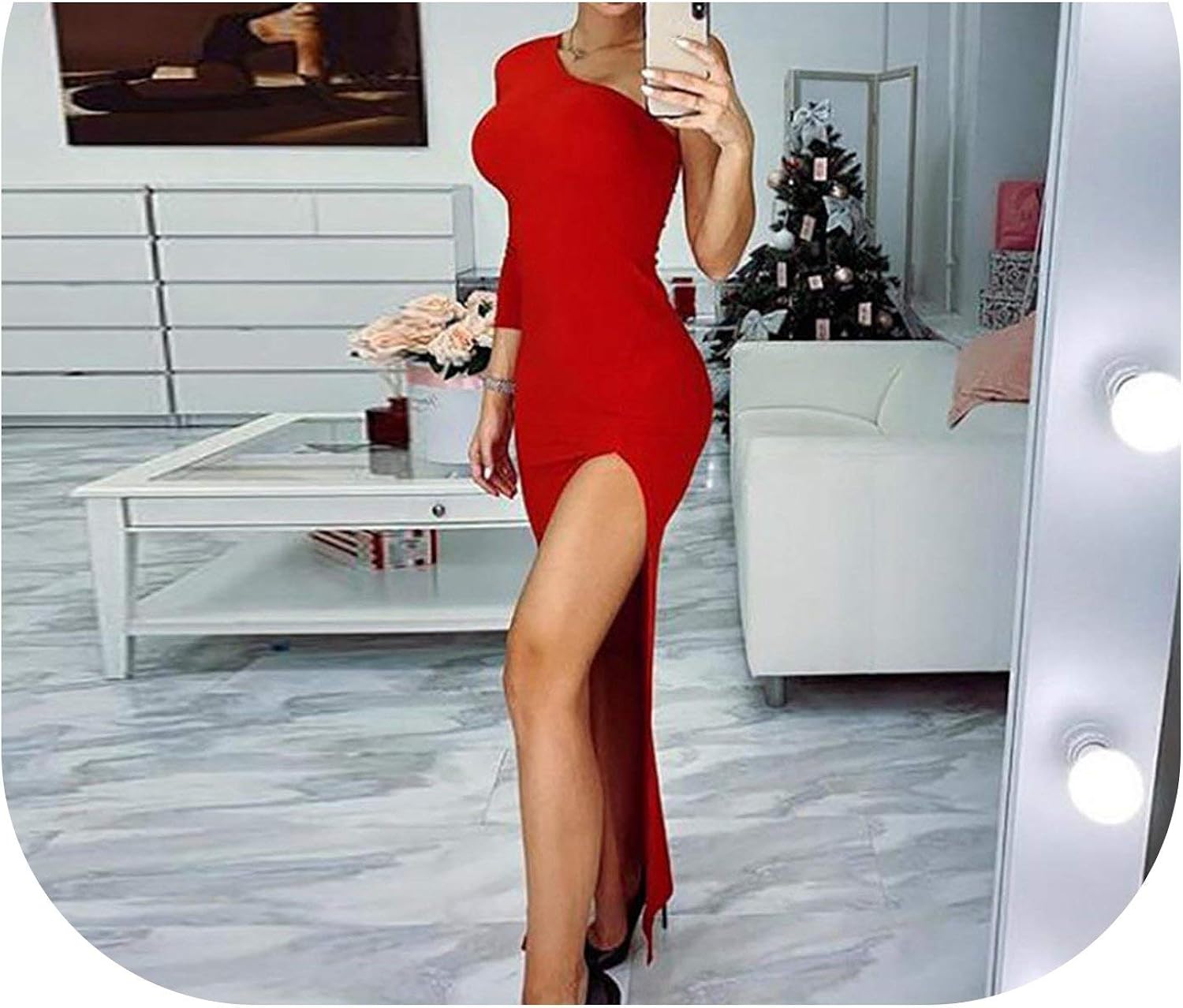 red bodycon maxi dress with thigh split