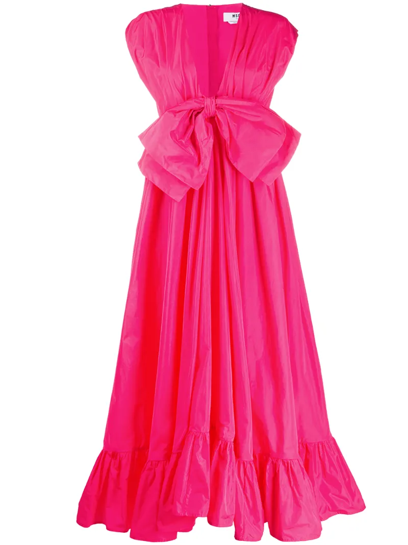 Msgm Statement Bow Midi Dress In Pink bow midi dress