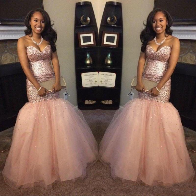 2018 Rose Gold Mermaid Prom Gowns Shiny rose prom dresses 2018