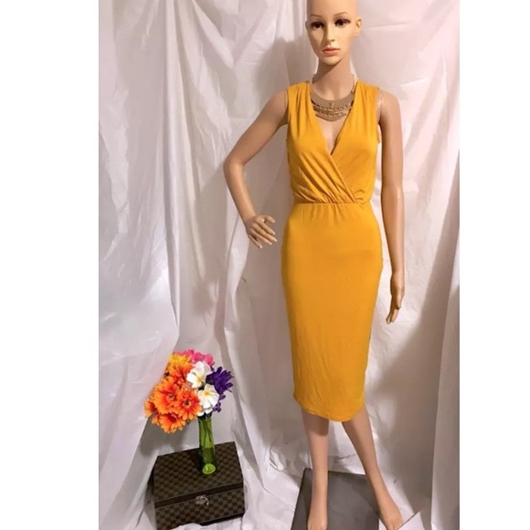 mustard bodycon midi dress