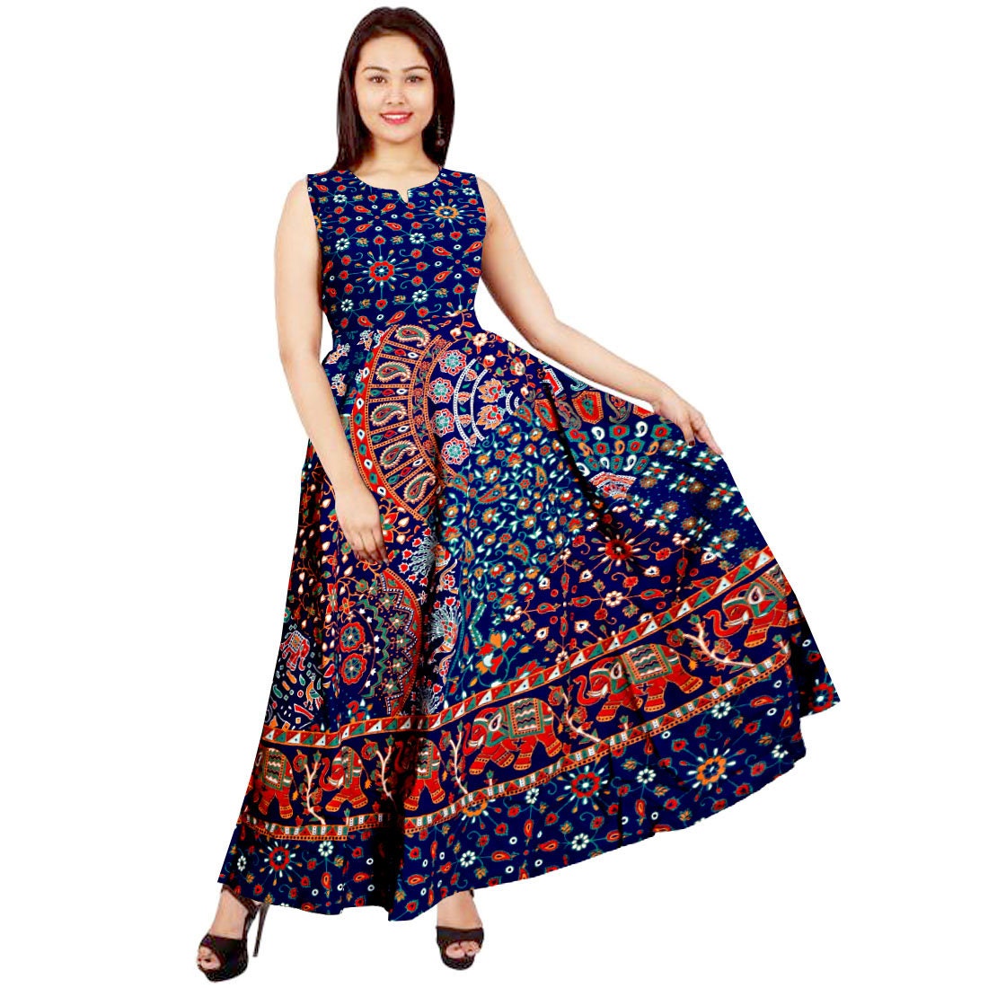 Vintage Indian Cotton Floral Print Knee knee length sundress