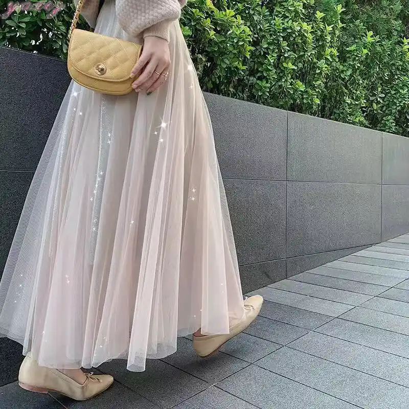 Tulle Pleated A Line Maxi Skirts Womens plus size tulle maxi skirt