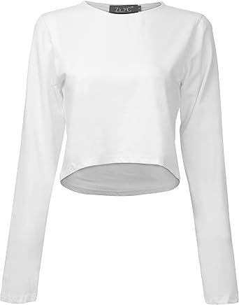 ZLYC Women Long Sleeve Yoga Crop Top white long sleeve yoga top