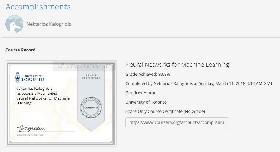 Neural Networks for Machine Learning geoffrey hinton's neural networks for machine learning course