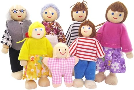 Wooden Dollhouse Family Set - 7 Piece dollhouse family set