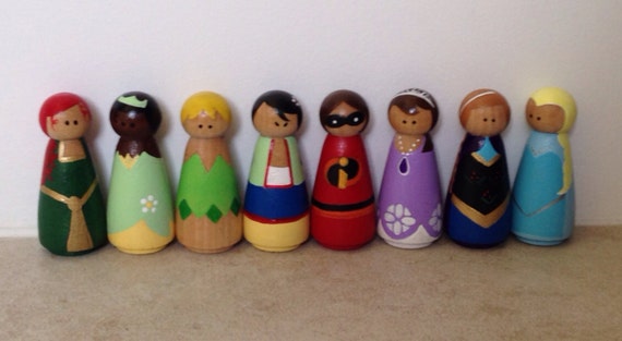 Set of 4 Disney Inspired Princess Peg peg doll princess