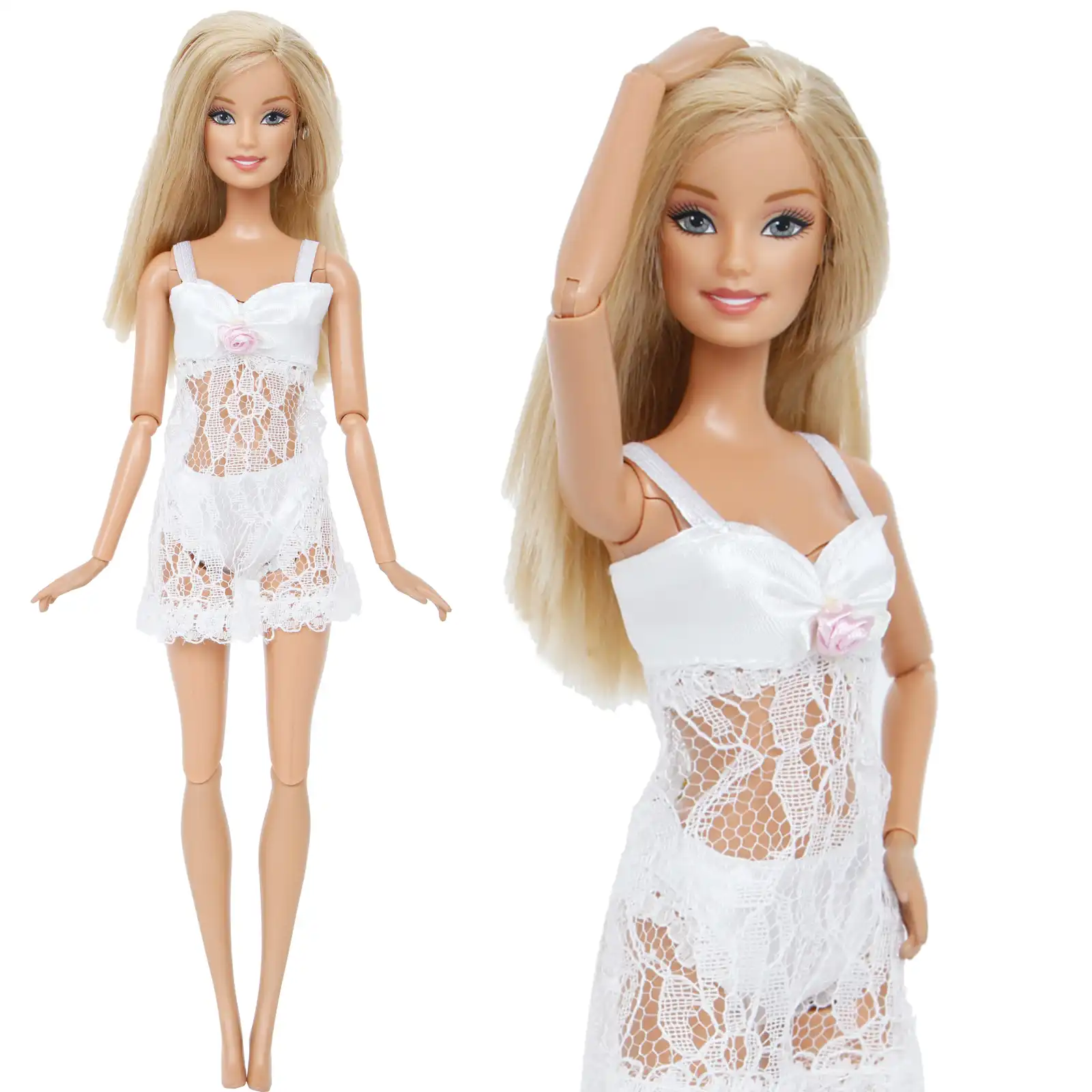 Handmade Doll Pajamas White Lace Outfit barbie doll nightwear