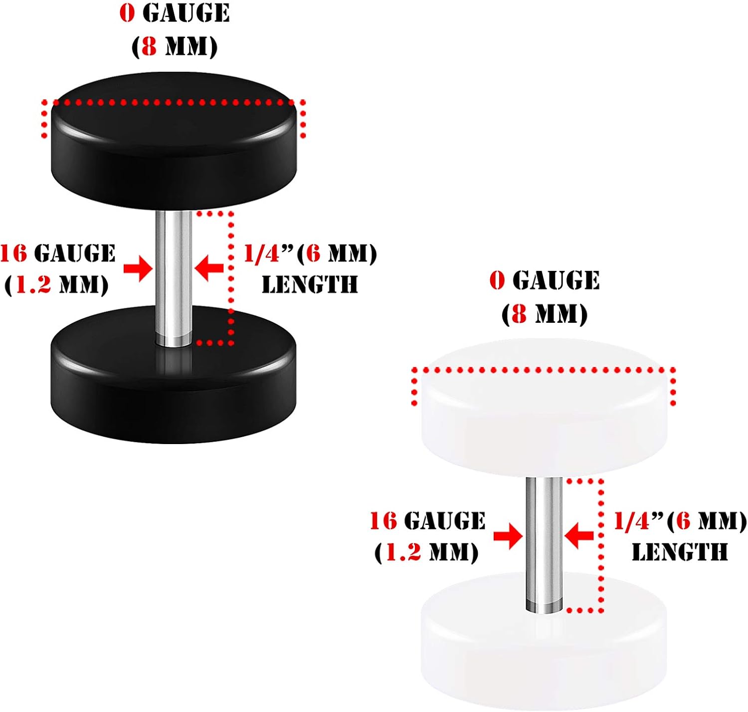 Pairs Acrylic 16g Gauge 1.2mm 8mm Black o gauge in mm
