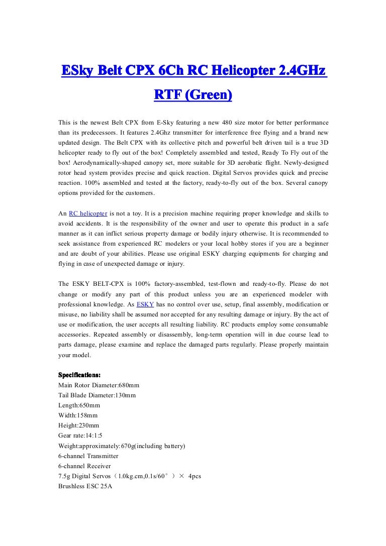 ESky Belt CPX 6Ch RC Helicopter 2.4GHz RTF belt cpx helicopter