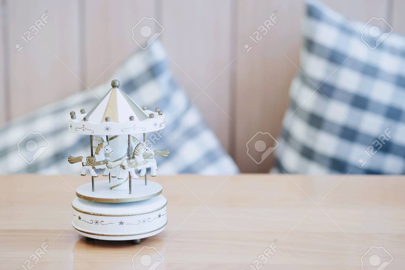 Carousel On A Wooden Table Stock Photo carousel wooden activity table