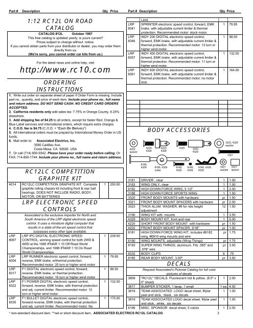 Parts List/Exploded View - Team Associated team associated tc3 parts