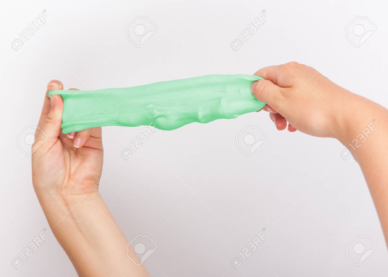 Hand Made Green Slime Toy Stock Photo slime hand toy