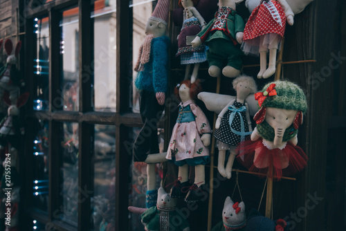 cotton in the store. Handmade doll selling handmade toys