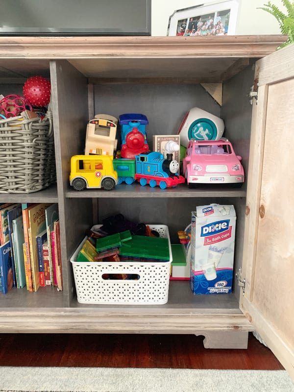 Simple toy storage in our family room magna tiles storage