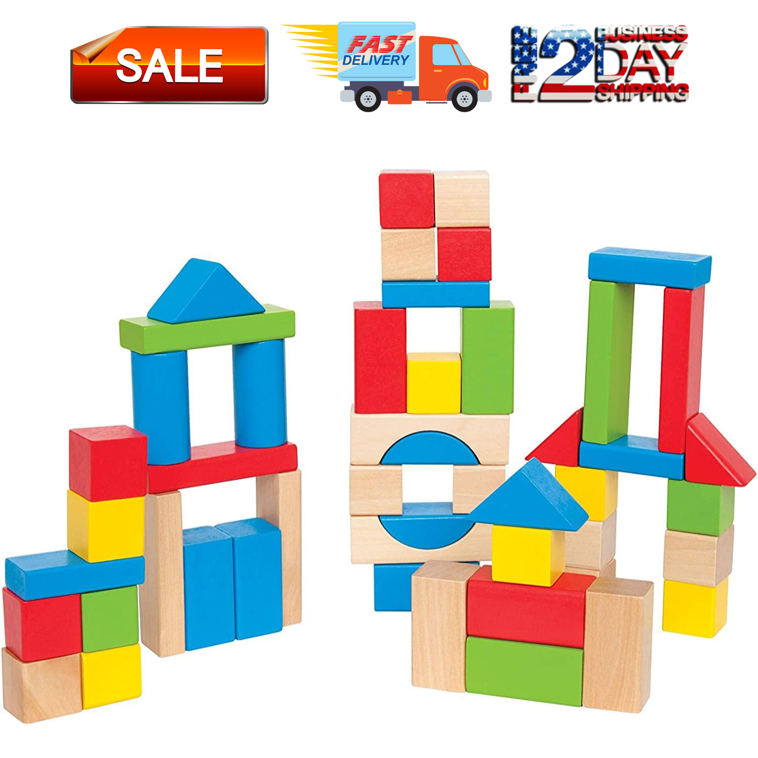Top Right Toys 50 Colorful Wooden building blocks wooden