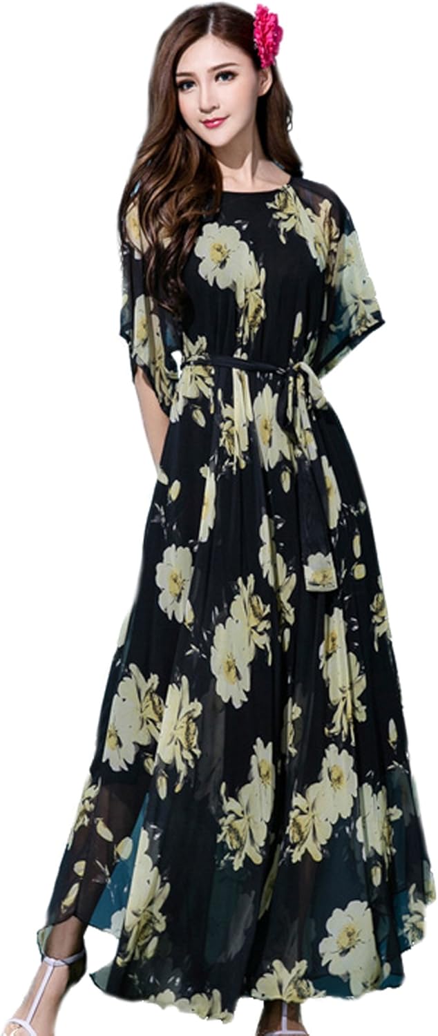 Medeshe Floral Bohemian Short Sleeve holiday maxi dresses with sleeves