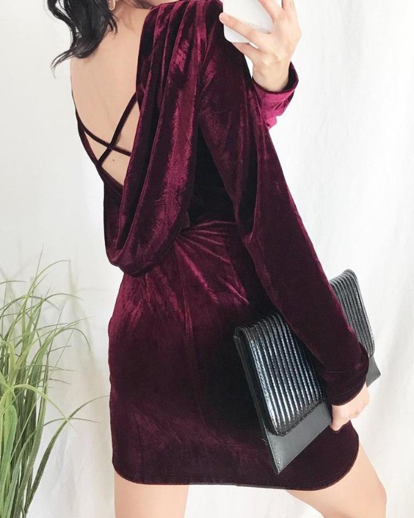 Crisscross Open Back Velvet Dress open back velvet dress