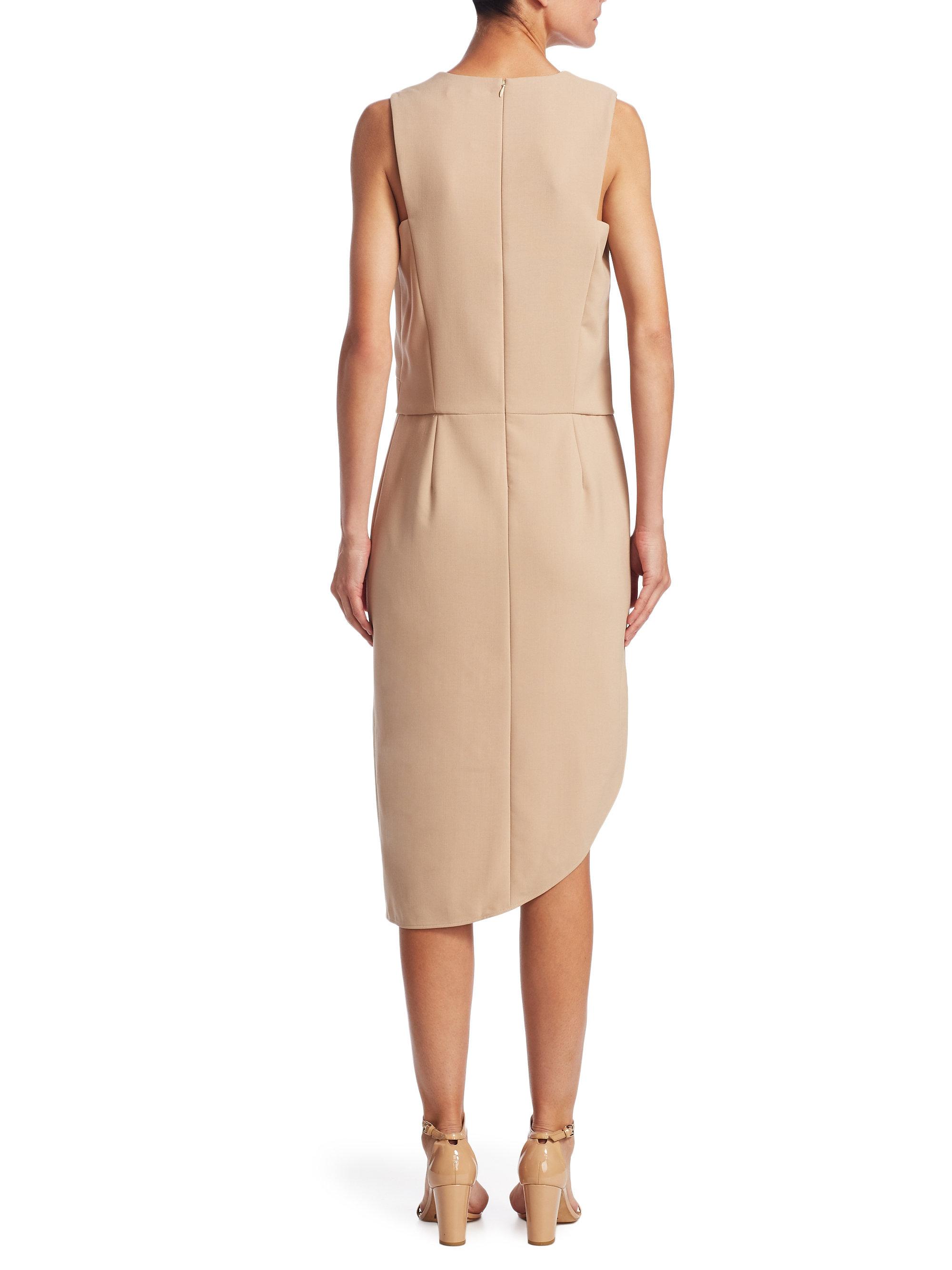 Halston Synthetic Drape-front camel sheath dress