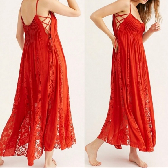 Hailee Red Orange Lace Midi Dress red orange midi dress