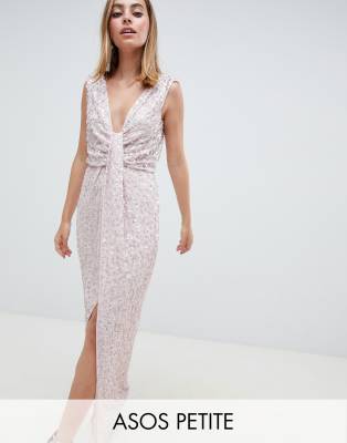 ASOS DESIGN Petite drape knot front sequin maxi dress petite