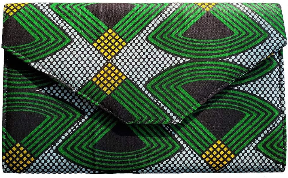 Green, Black African Print Clutch Purse green african print