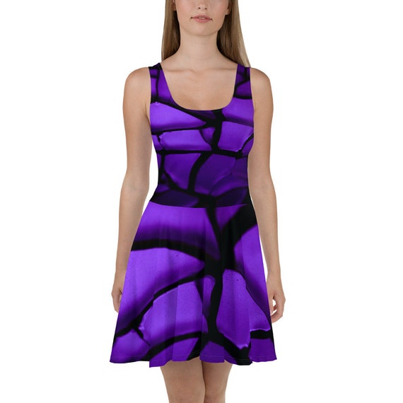 Purple Spiderweb Skater Dress Abstract purple fit and flare dress
