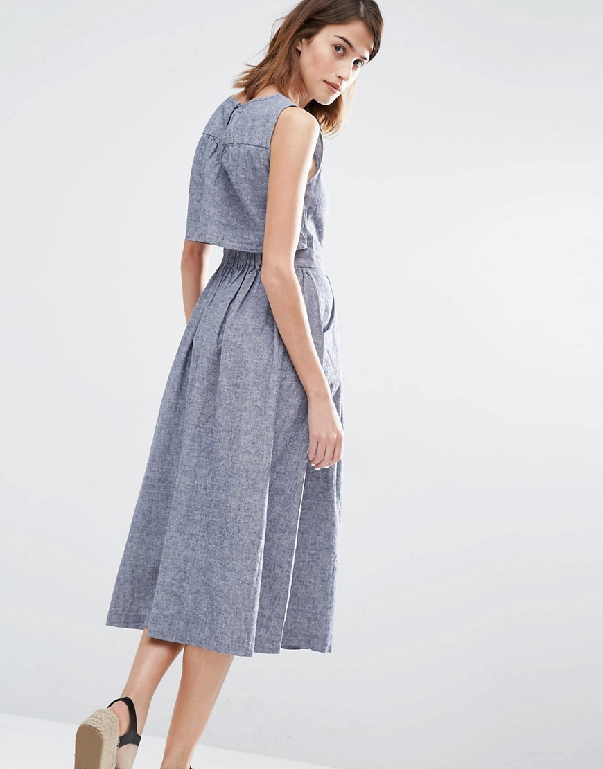 Linen Mix Midi Dress in Blue warehouse linen dress