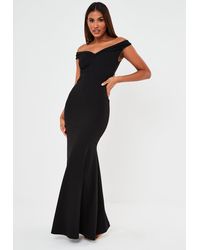 Missguided Synthetic Black Bardot black bardot fishtail bodycon midi dress