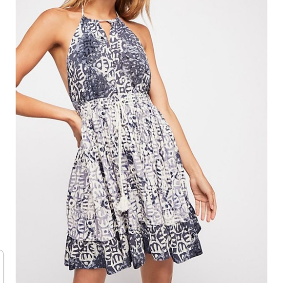 Halter Mini Dress Blue free people beach day mini dress