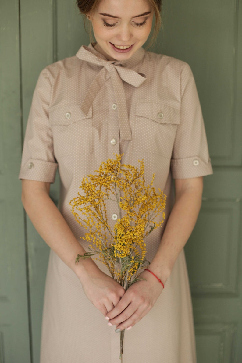 Nude polka dot shirt dress summer shirt tea dress