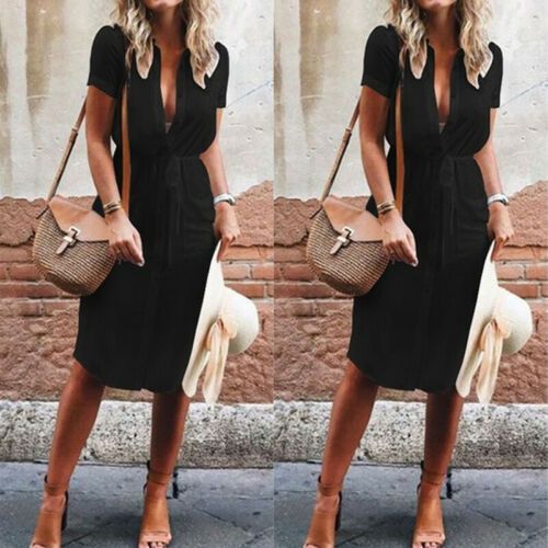 Women Sexy Short Sleeve V Neck Casual shirt tea dress