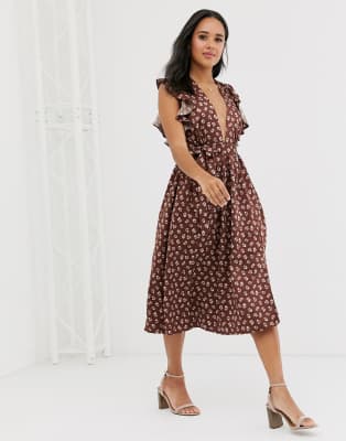 Glamorous plunge front midi dress with polka dot plunge midi dress by glamorous