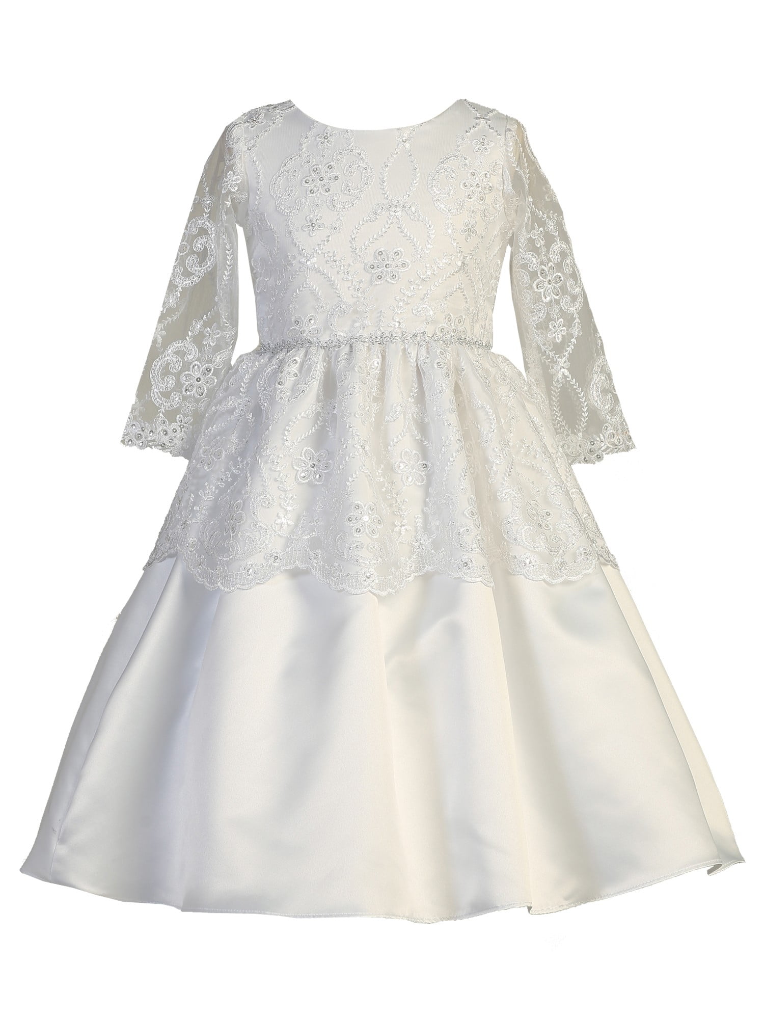 Lito - Lito Girls White Long Sleeve white long sleeve tea length dress
