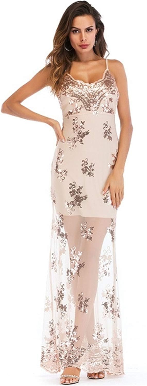 Amazon.com: Sleeveless Spaghetti Strap sexy deep v collar embroidery floral printed fishtail maxi dress