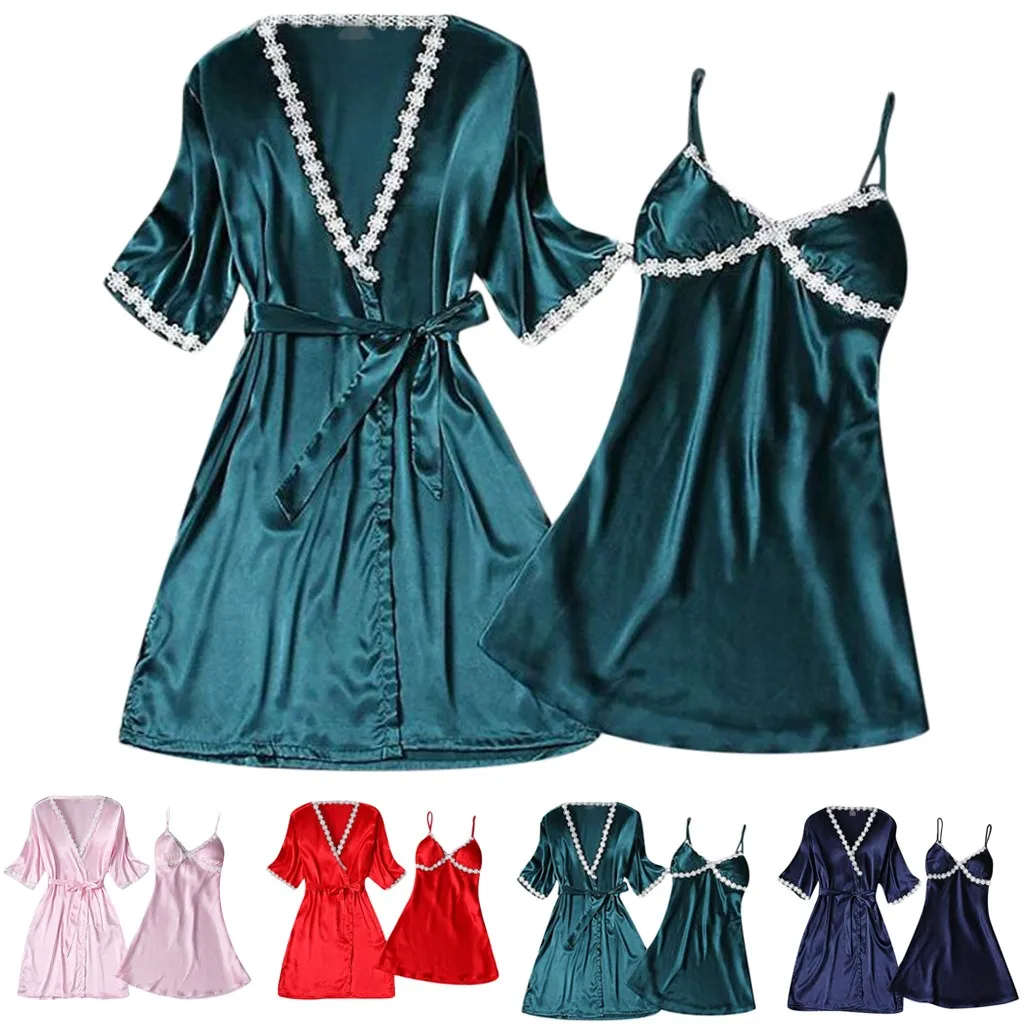 2020 New Spring Summer 2pcs Women Sexy satin nightdress set