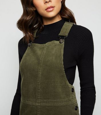 Khaki Corduroy A-Line Pinafore Dress new look burgundy cord pinafore