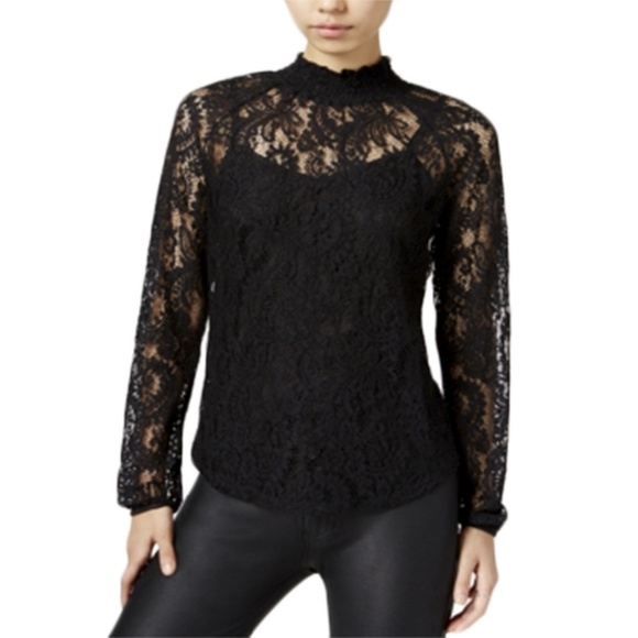 Bar Iii Black Lace High Neck Top Sz S black lace high neck