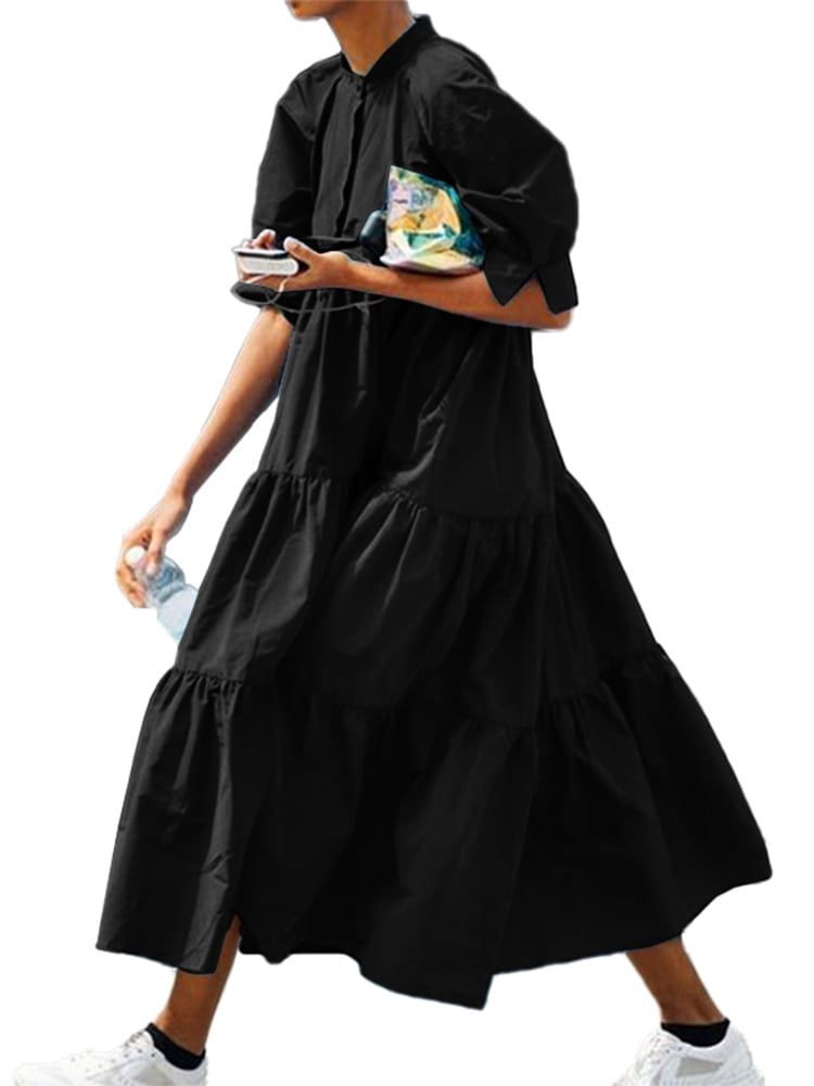 Women's Short Sleeve Mock Neck Ruffle elegant shirt dresses