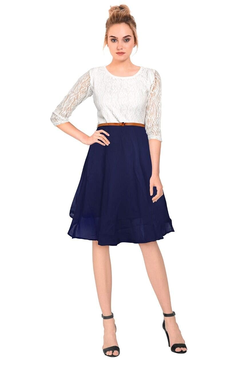 Georgette Design Frock (White and Blue design frock for ladies