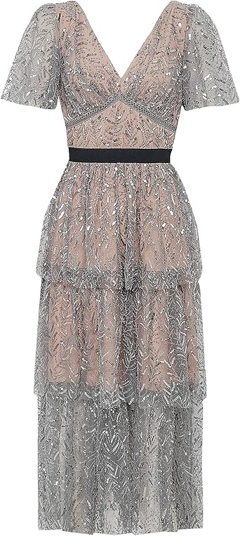 Leaf Sequin Midi Dress Gray self portrait evening dress